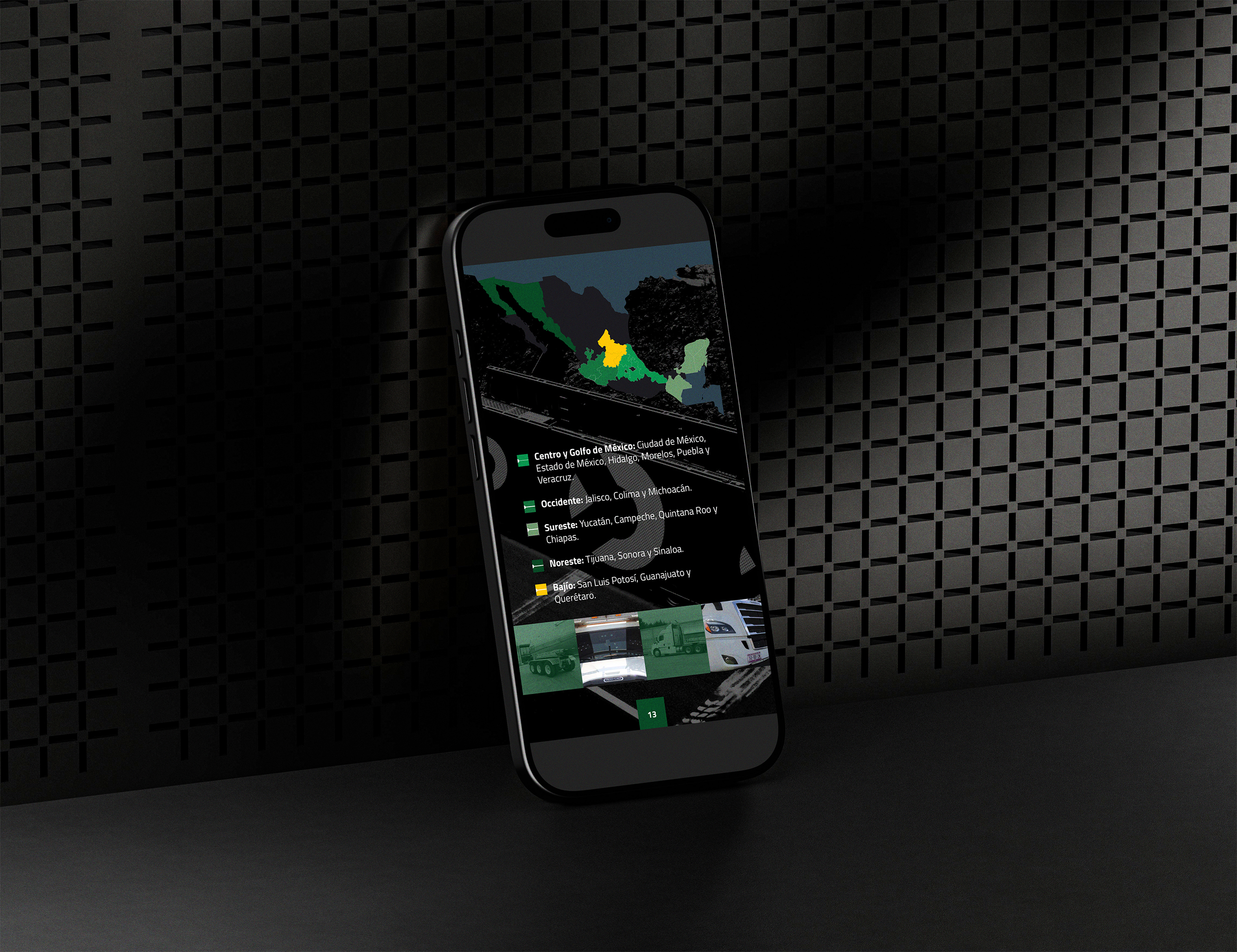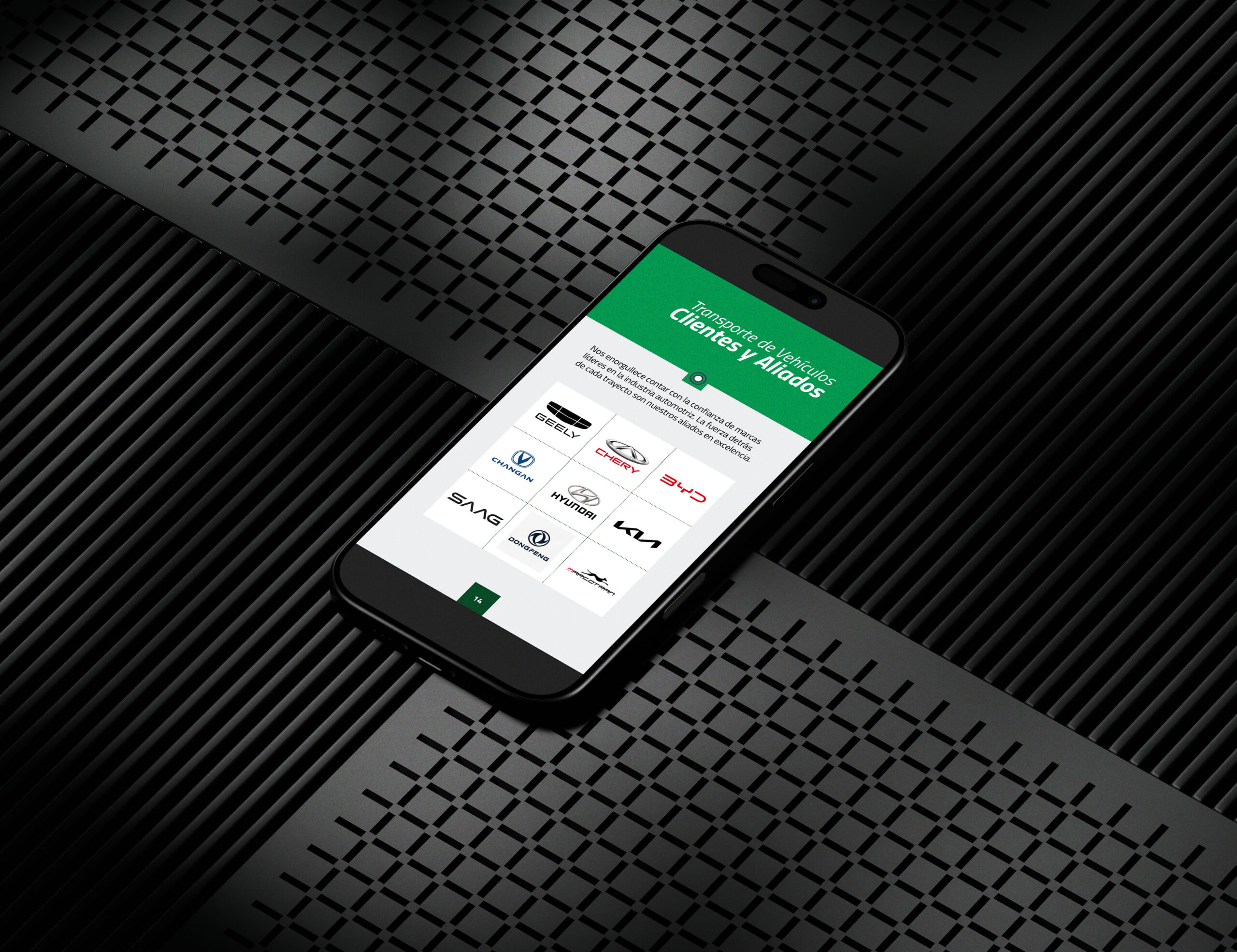 Se creó un brochure digital para dispositivos móviles que comunica de manera clara y accesible la renta de transportes, incluyendo madrinas, nodrizas y unidades de carga con grado alimenticio, fortaleciendo la difusión de sus servicios con un enfoque moderno y eficiente.